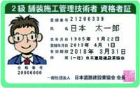 >試験の合格者は、登録の申請を行い、一般社団法人 日本道路建設業協会 会長から「舗装施工管理技術者資格者証」の交付を受けることによって、「舗装施工管理技術者」の称号を用いることができます。